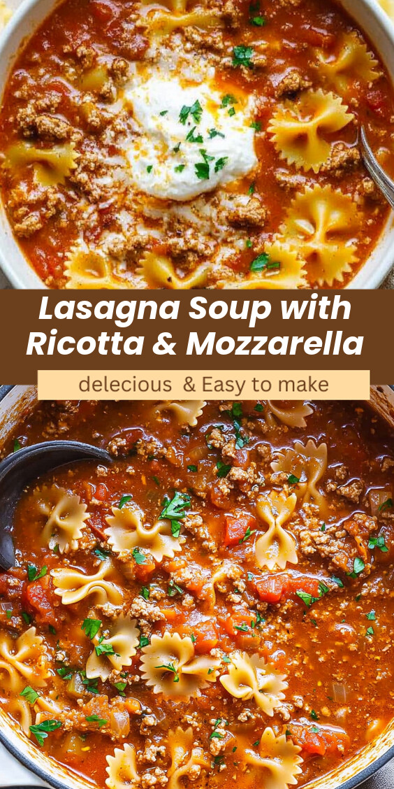 Lasagna Soup with Ricotta & Mozzarella