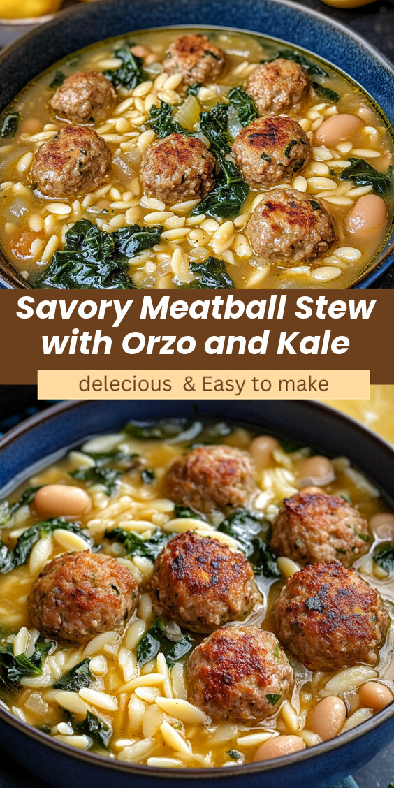 Savory Meatball Stew with Orzo and Kale