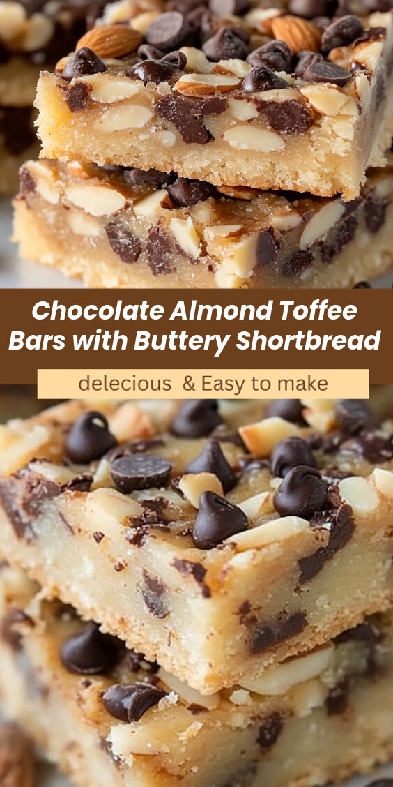 Chocolate Almond Toffee Bars with Buttery Shortbread